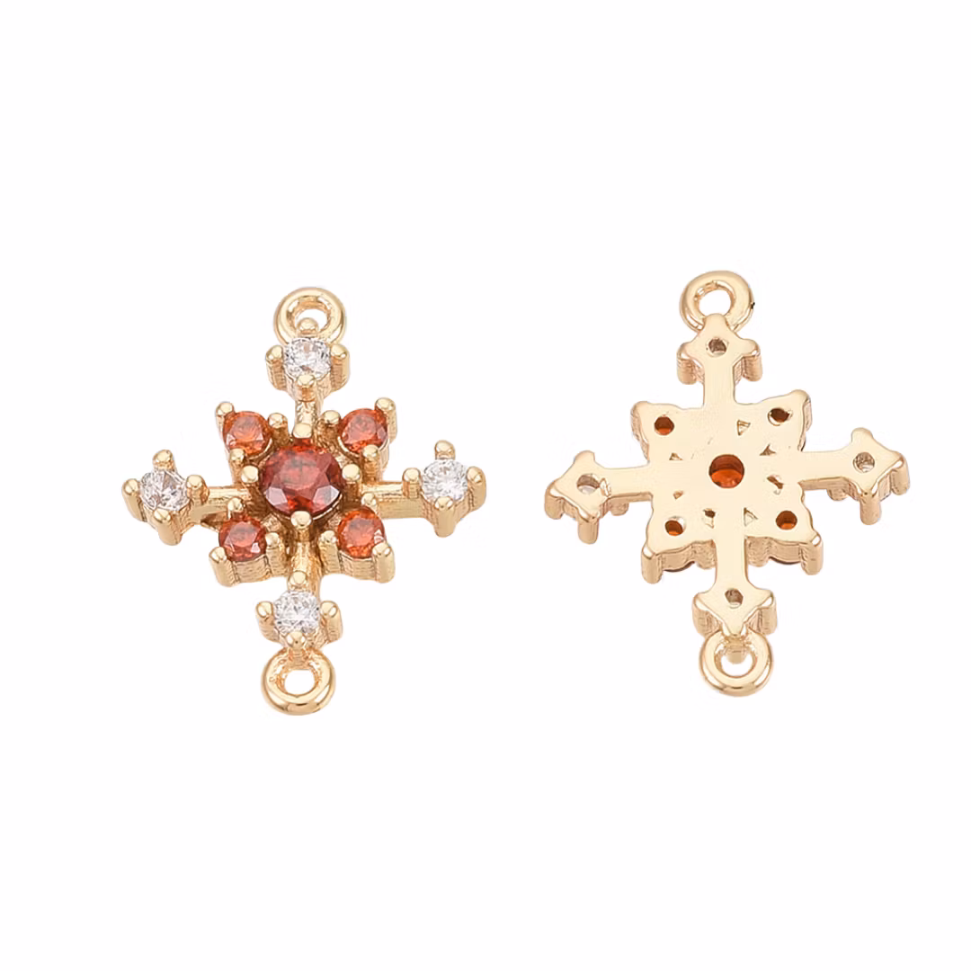 Guldfärgad connector snöflinga orange cubic zirconia med 18k, 1 st