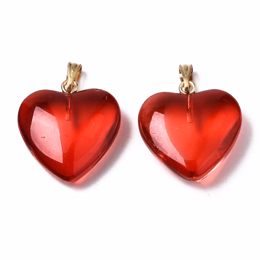 Glashänge hjärta med hållare av nickelfri metall. Mått: 22x20.5x7mm.