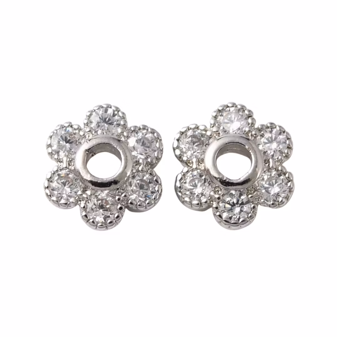Antikfärgad pärlhatt 6 mm blomma med cubic zirconia, 1 st