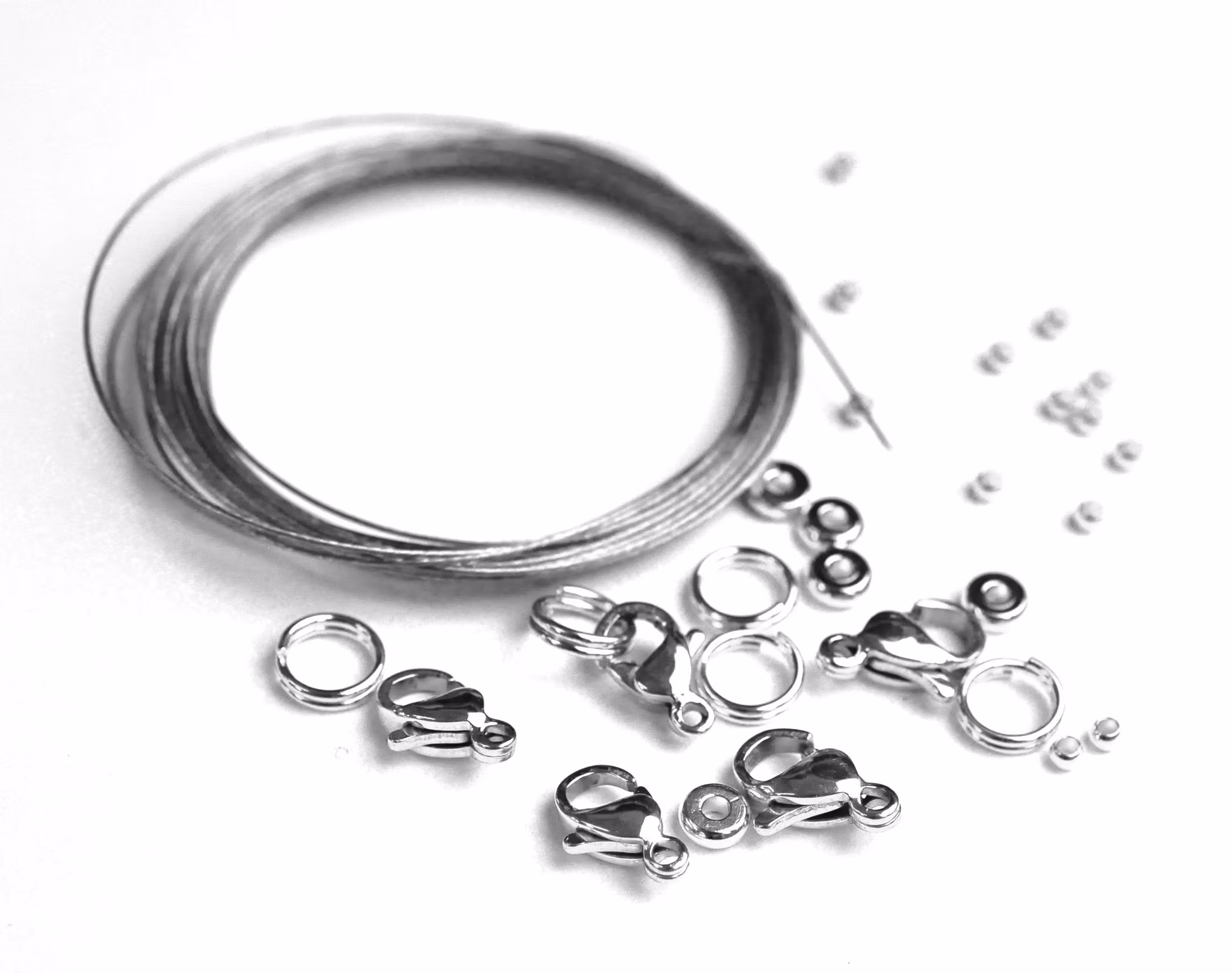 En påse med innehåll för att börja tillverka smycken med wiretråd, det mest hållbara sättet att tillverka halsband och armband.