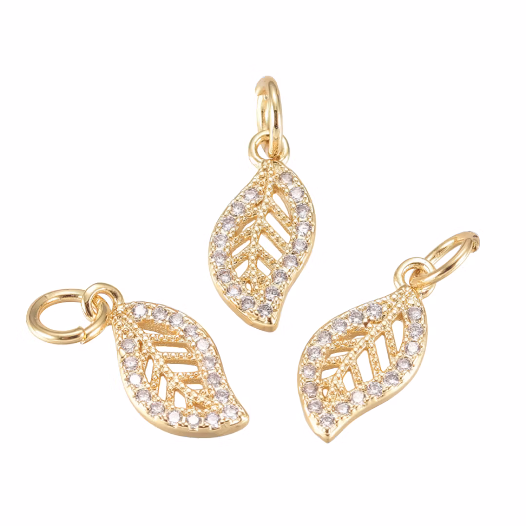 Guldfärgad berlock cubic zirconia löv, 1 st