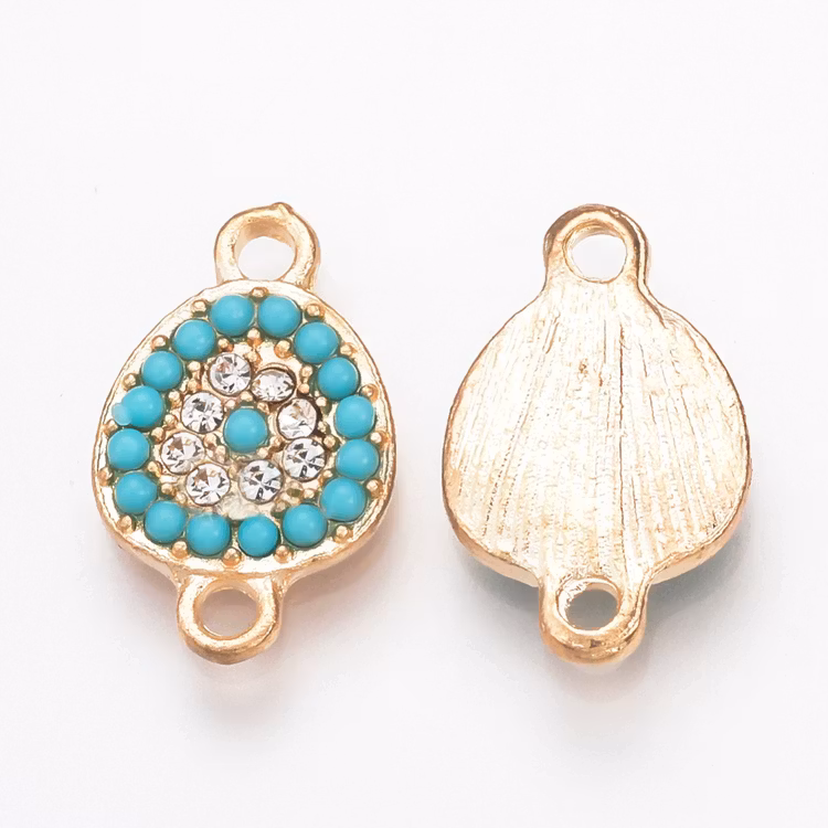 Ljust guldfärgad turkos connector strass, 1 st